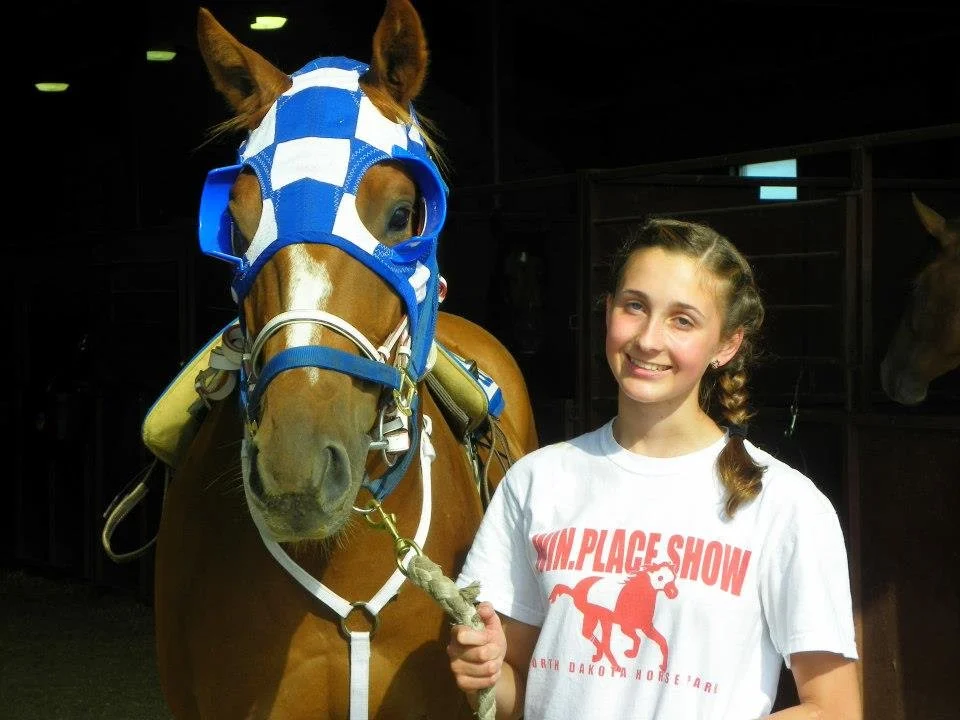Amplify Co-Founder Madison Scott meeting Smarty Jones in 2014, the racehorse who inspired her to pursue a career in the Thoroughbred industry.
